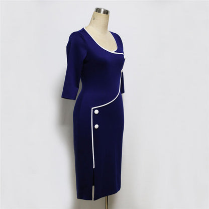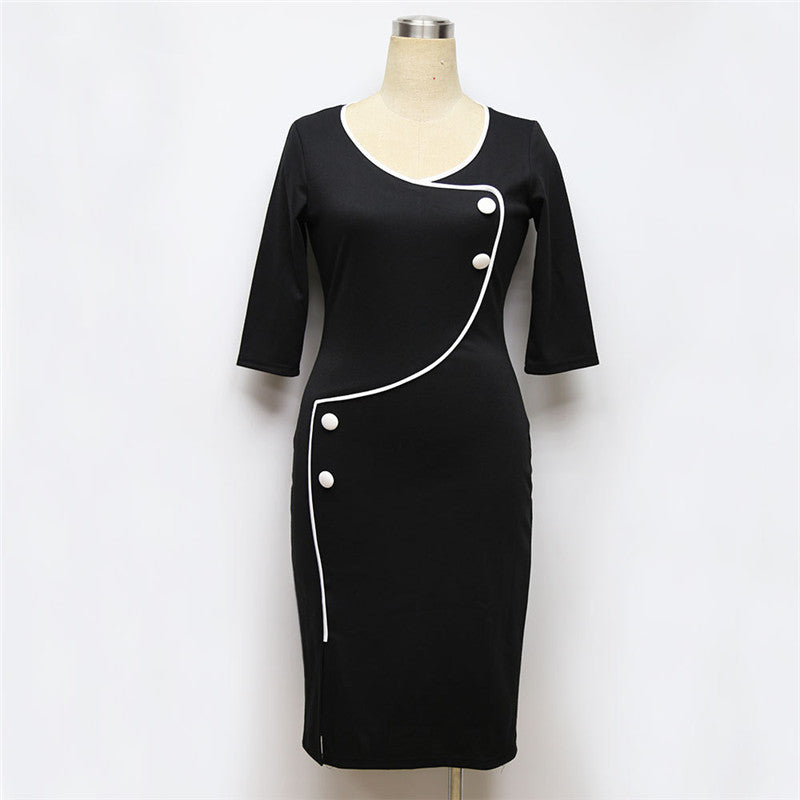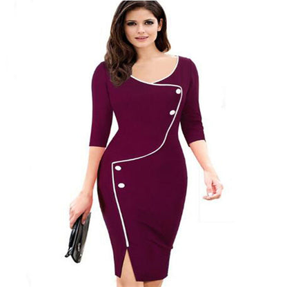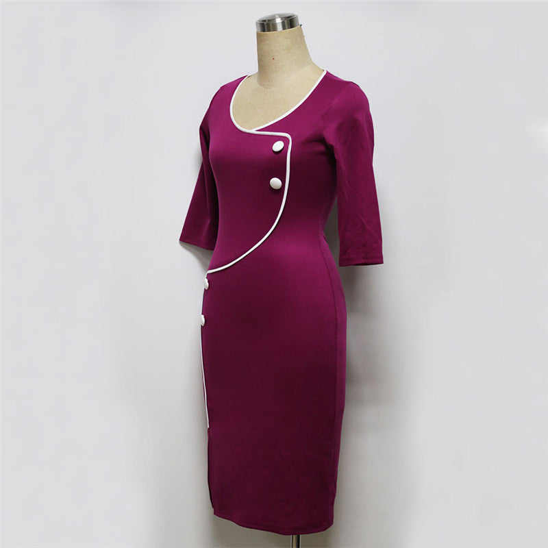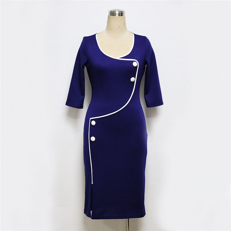 MBluxy V-neck 3/4 sleeves tight fitted sunmer casual lady dress