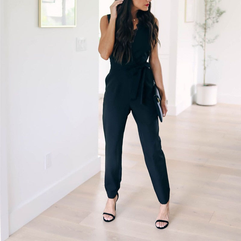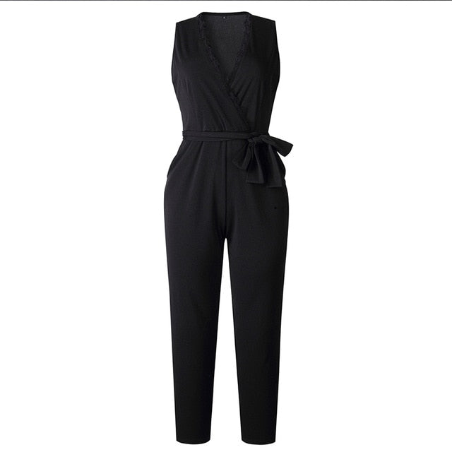 MBluxy Fashion Lace Women Jumpsuit With Belt Sleeveless