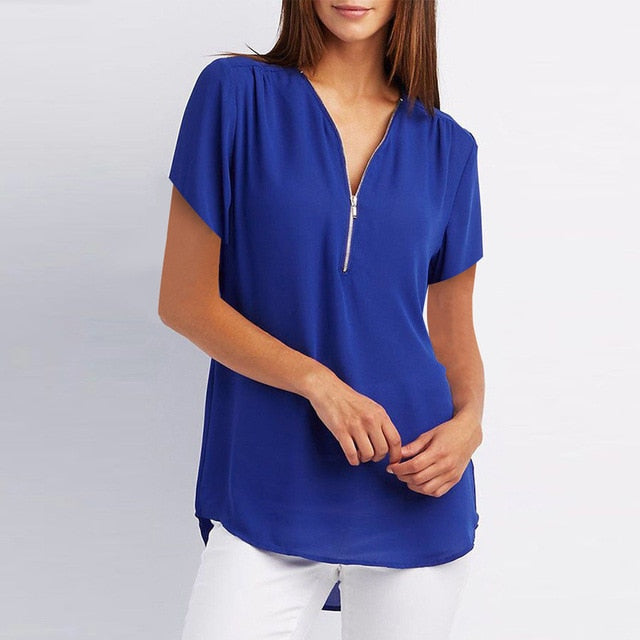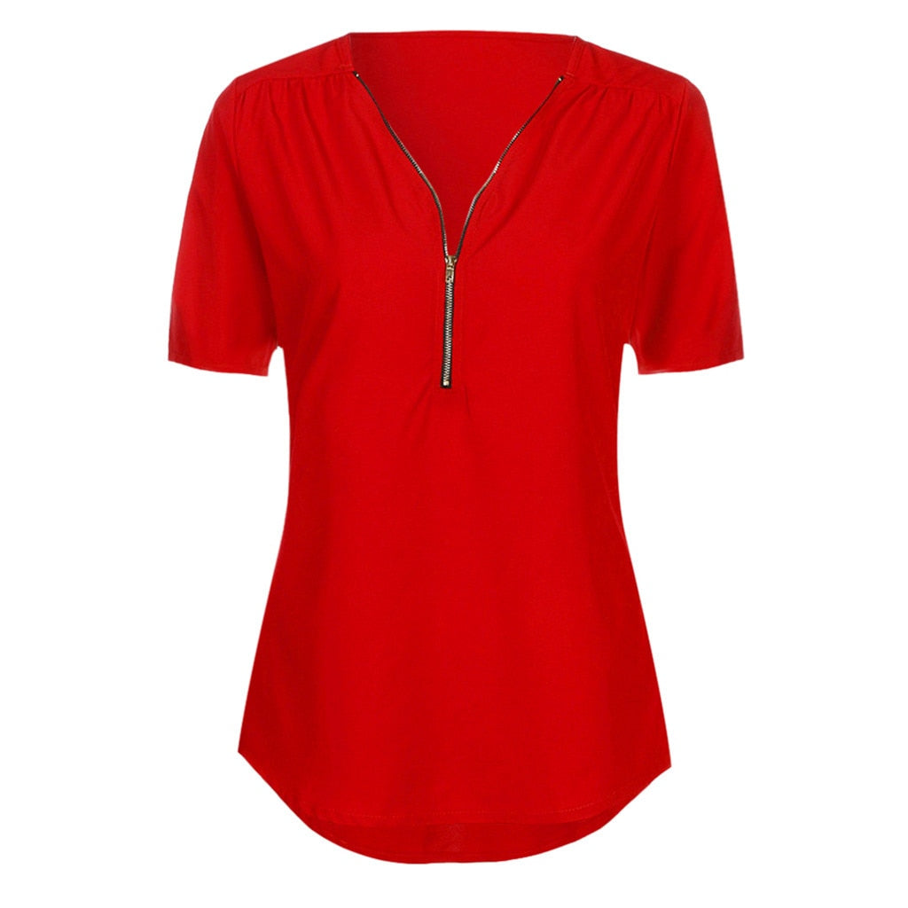 MBluxy Female Casual Top Shirt Ladies V Neck Zipper