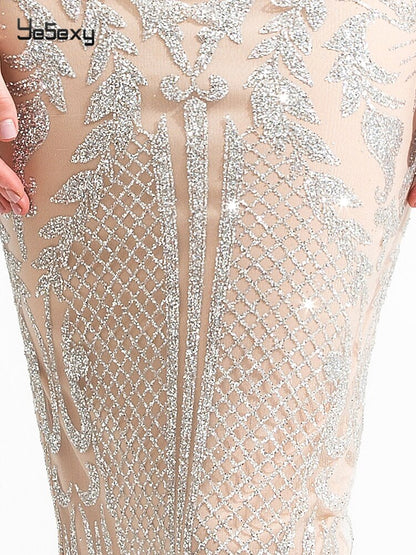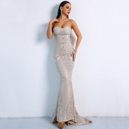 Mbluxy Elegant Strapless Glitter Women Maxi Dresses