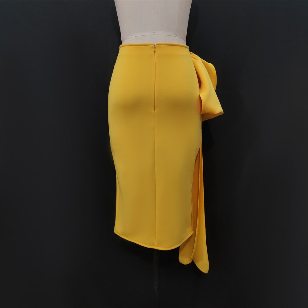 Add a pop of color to your style with the MBluxy Women's High-Waist Yellow Skirt – the perfect mix of elegance and versatility!