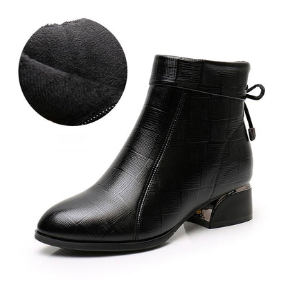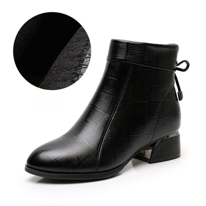 MBluxy Ankle Boots Women Pointed Toe Thick Heels Genuine Leather Shoes
