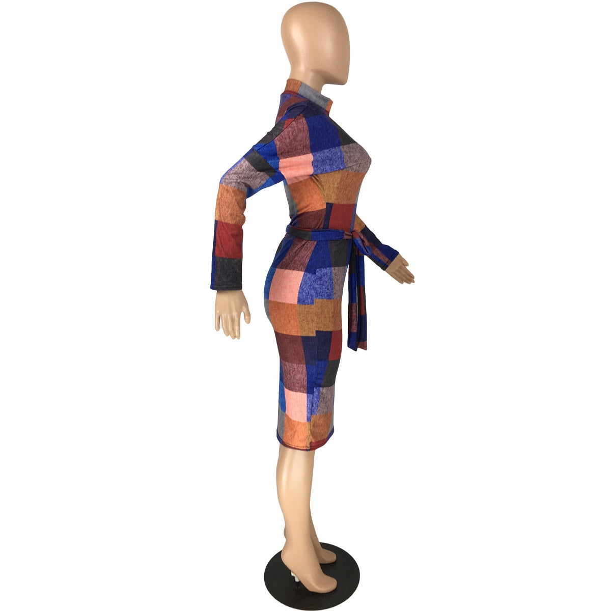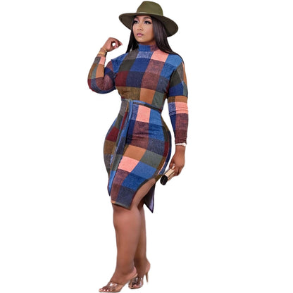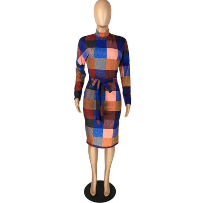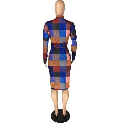 MBluxy Fall Girl Fashion Plaid Printed Dress Long Sleeve