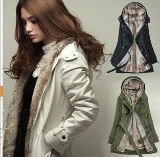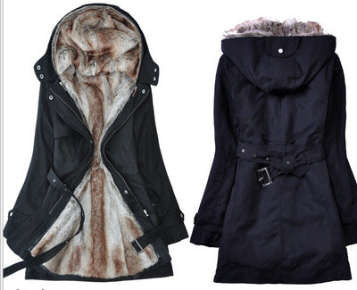 MBluxy fur lining women's fur Hoodies winter warm long fur inside
