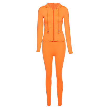 - 2-Piece Set: Includes a zip-up hooded top and matching leggings