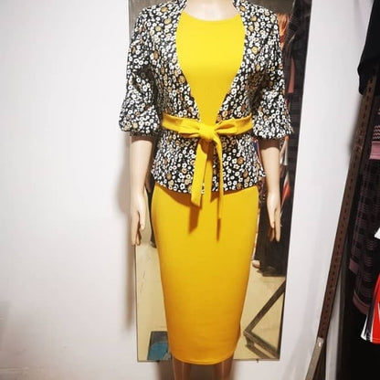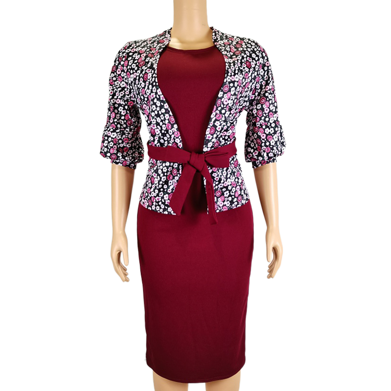 MBluxy spring summer New Two piece sets Long Sleeve Round Neck tight Plus Size office formal Dress