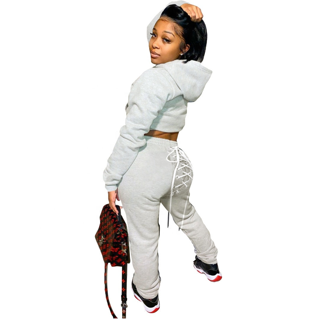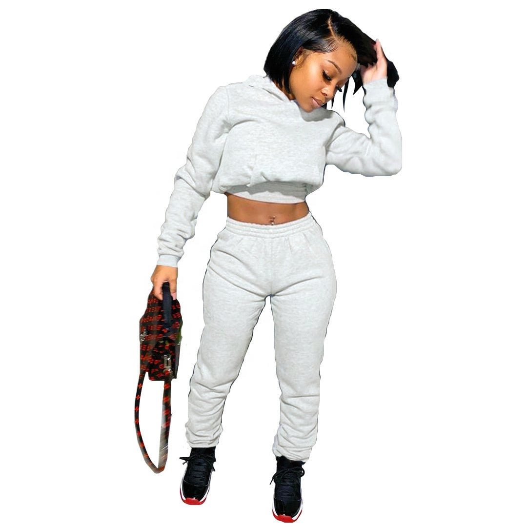 - 2-Piece Set: Includes a cropped hoodie and matching joggers