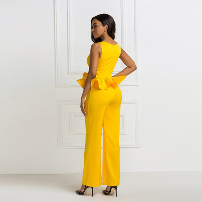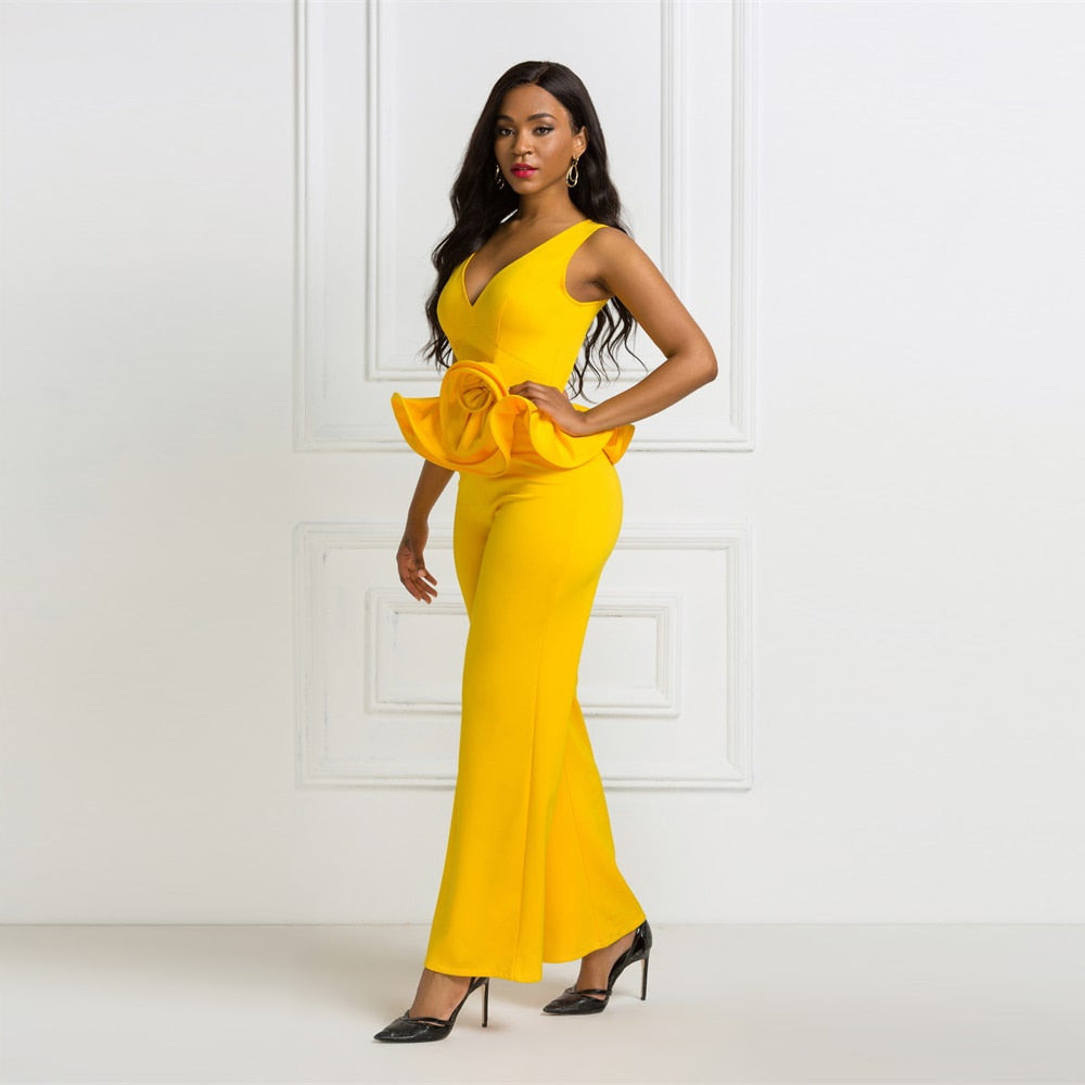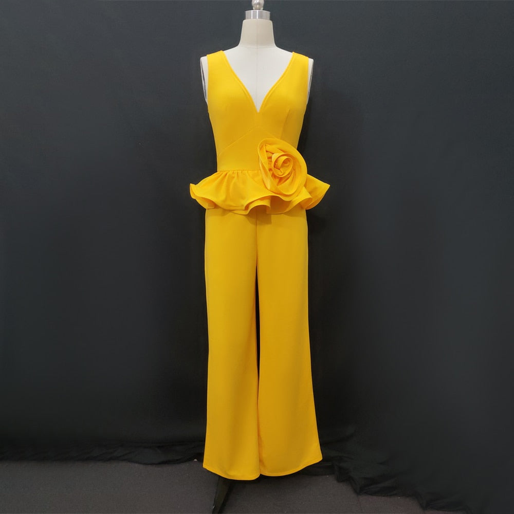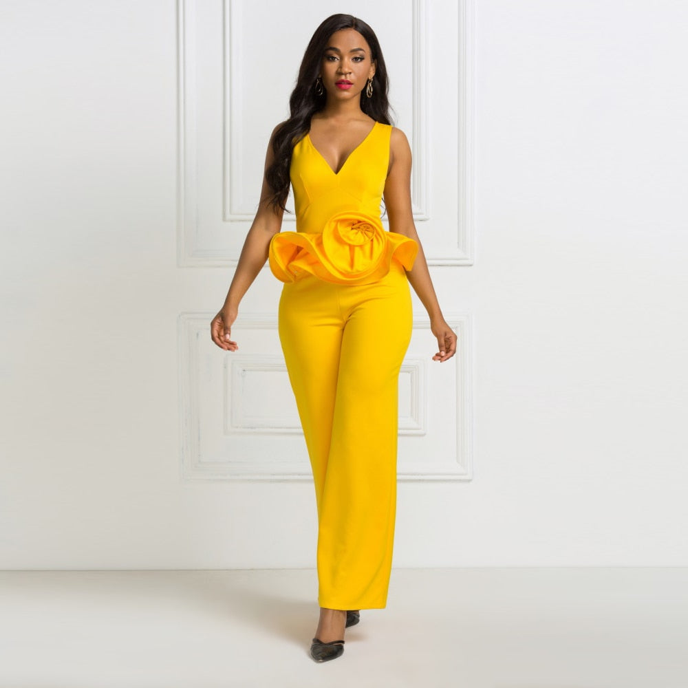 Mbluxy Yellow Jumpsuits Deep V Neck Flower