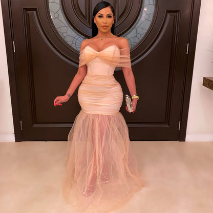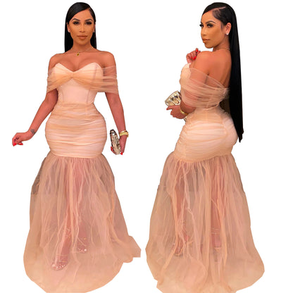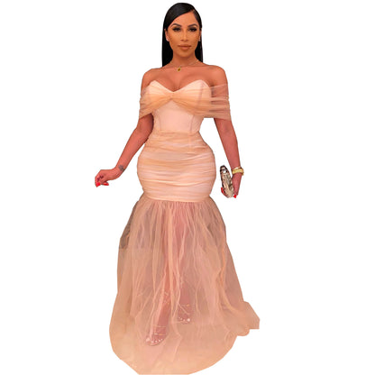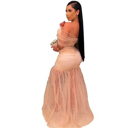 MBluxy Women Clothes Mesh Women's Slim Party Long Swing Prom Dress