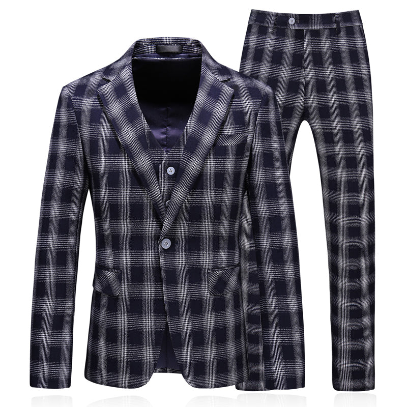 MBluxy Business Plaid Men Suits 3 Pieces Gentleman