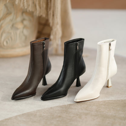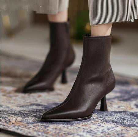 Step into elegance with the MBluxy Women's Genuine Leather High-Heel Boots, designed to add sophistication and confidence to your autumn wardrobe. Made from premium genuine leather, these boots feature a sleek pointed-toe design, a stylish high heel, and a convenient side zipper for easy wear. The perfect blend of fashion and comfort, these boots provide a snug yet breathable fit, making them ideal for casual outings, office wear, and evening events.