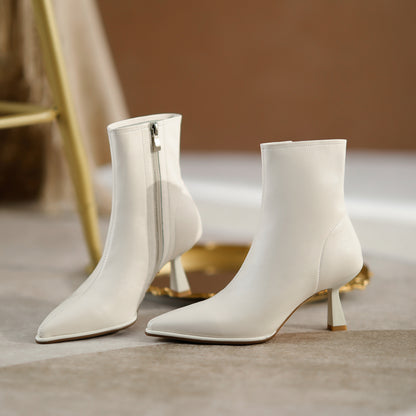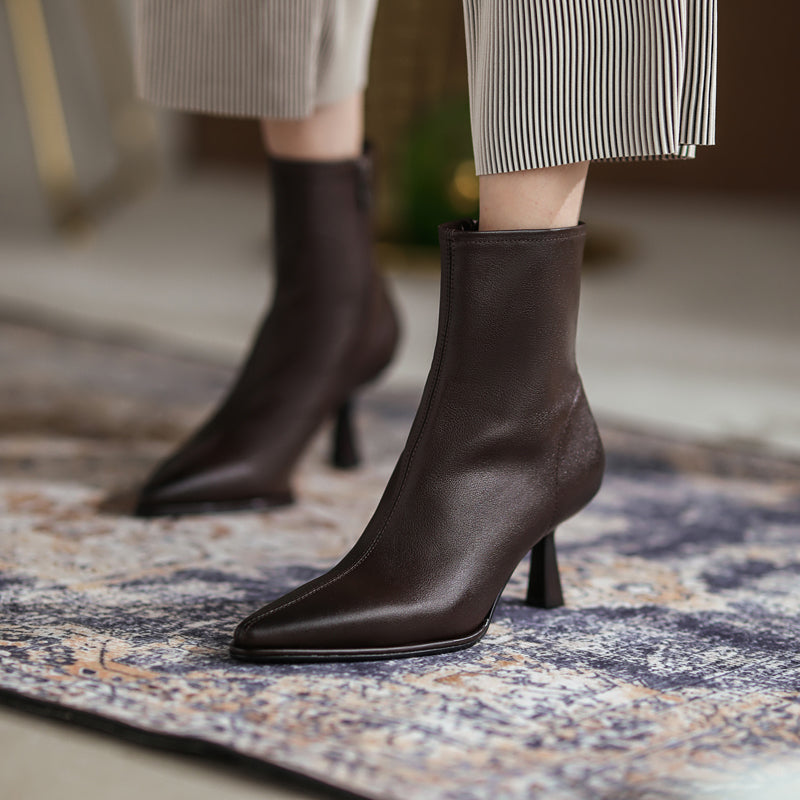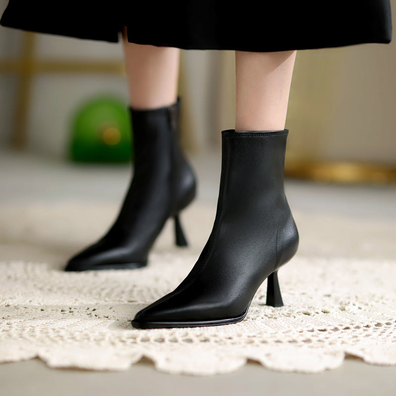 MBluxy genuine leather boots autumn shoes high heels zipper pointed toe