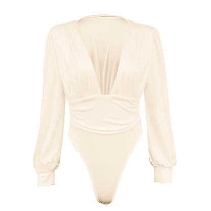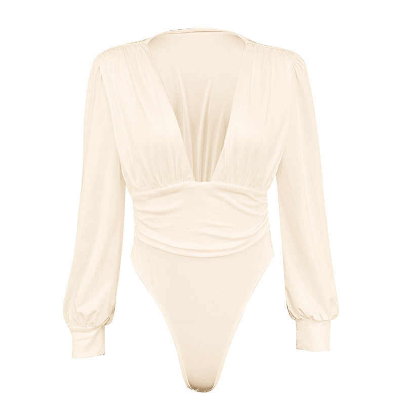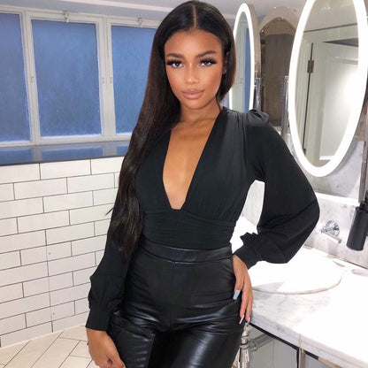 MBluxy High Quality Puff Sleeve Deep V Neck shirt