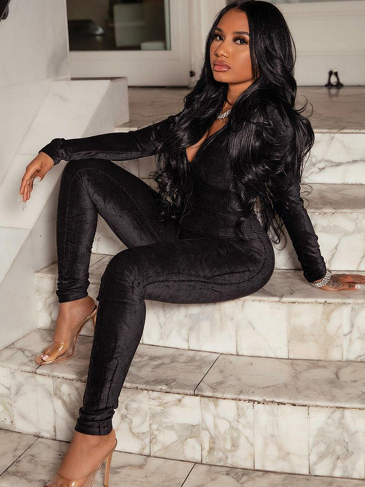 MBluxy Stretch V-Neck Velvet Long Sleeve