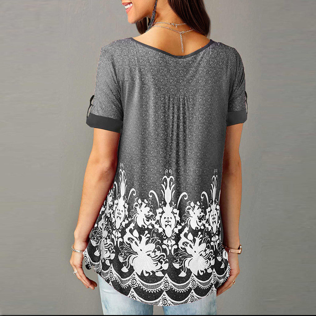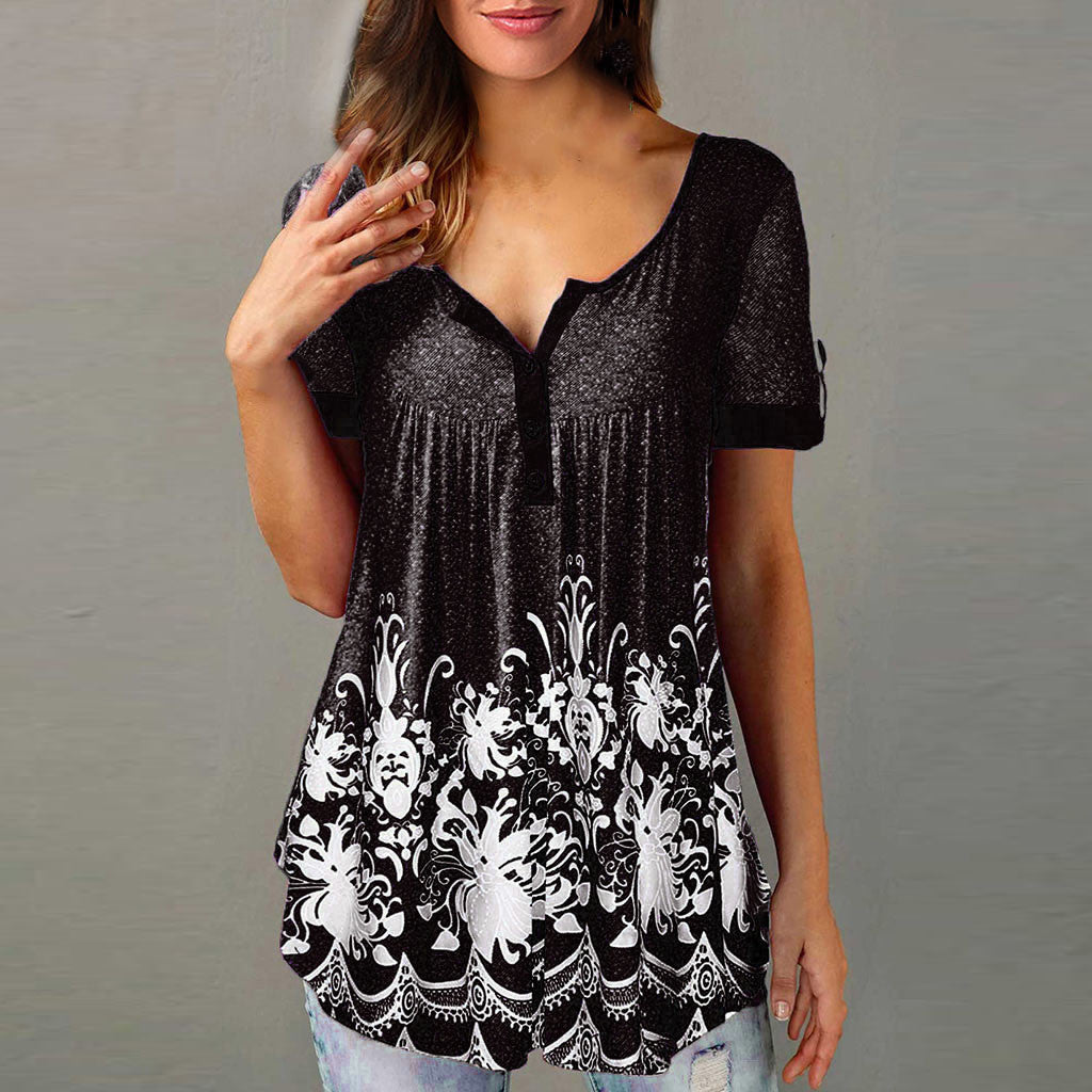 Mbluxy T shirt Women Casual Buttons Short Sleeve
