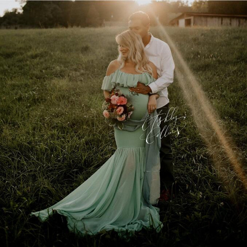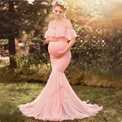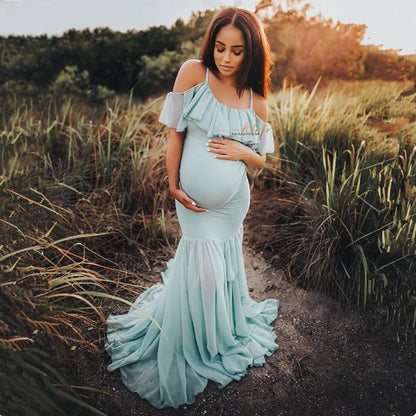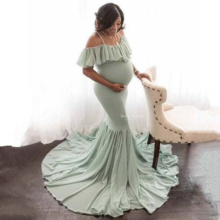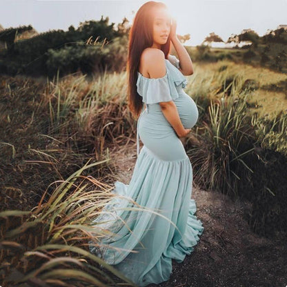 MBluxy Maternity Sling Sexy Off Shoulder Trailing Dresses