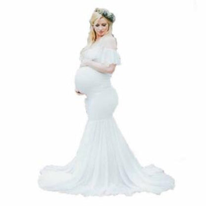 Styling Tip: Pair this dress with elegant heels and statement earrings for a breathtaking maternity photoshoot look.
